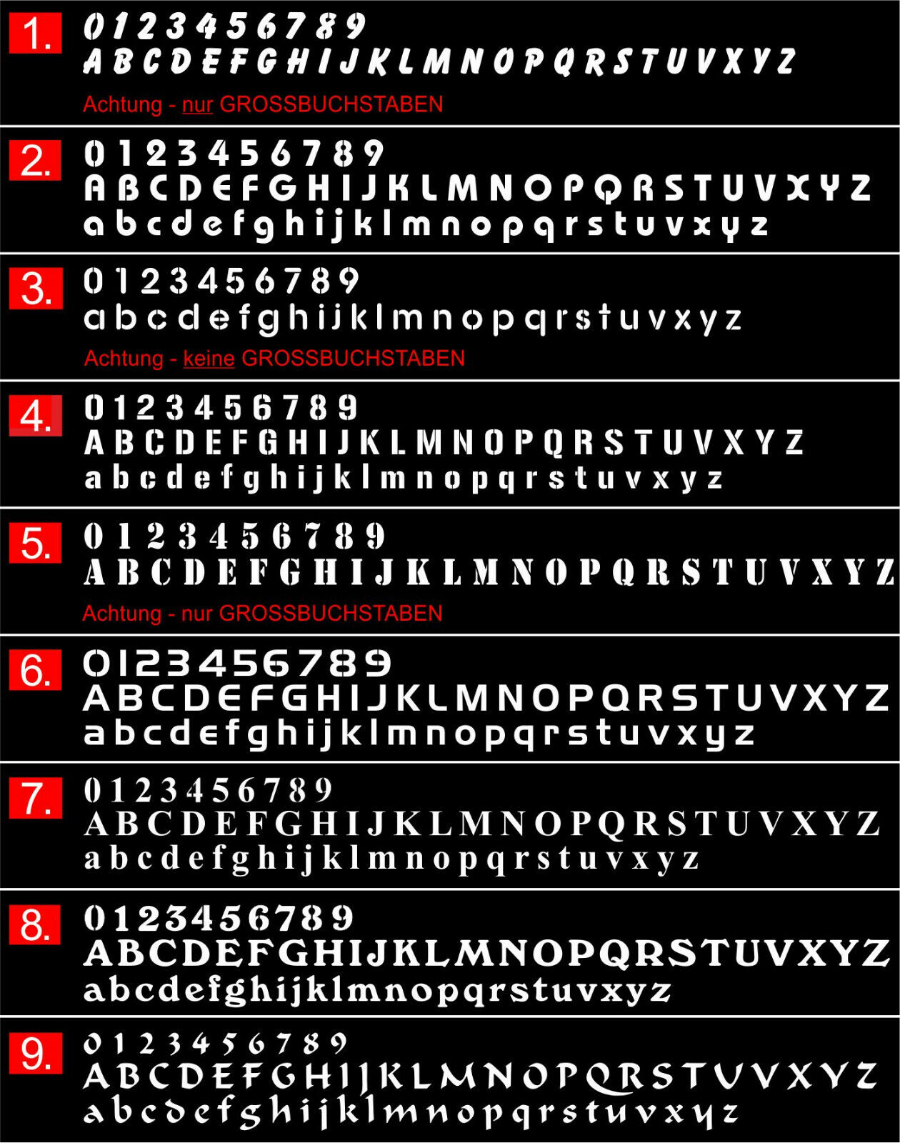 - 9 Schriftarten zur Auswahl